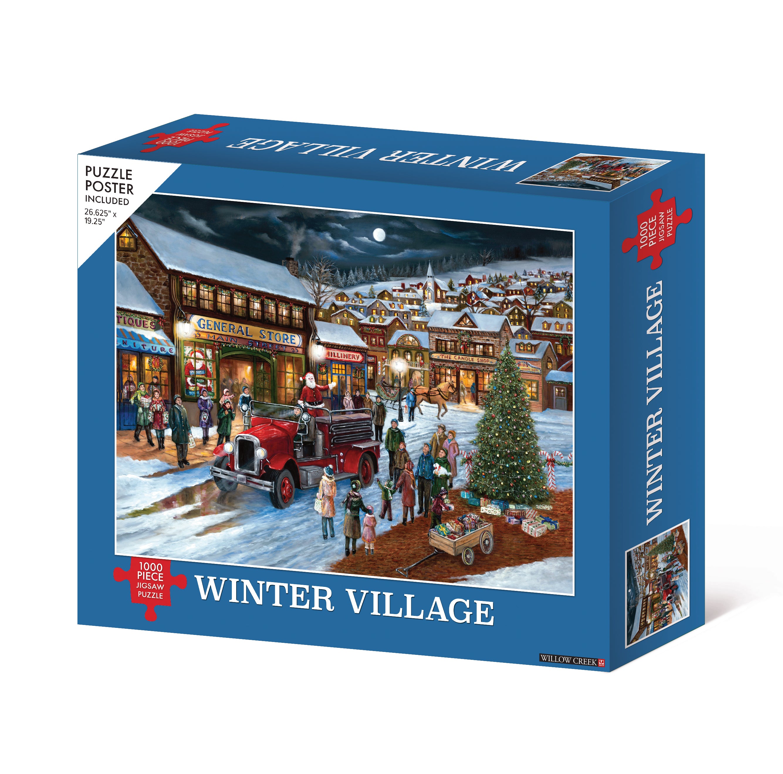 Tis the season to challenge your puzzle-solving skills with Willow Creek Press' Winter Village 1,000-Piece Puzzle. Perfect for any snowy day or holiday gathering, this winter scene puzzle is composed of 1,000 fully interlocking pieces, perfect for hours of entertainment. With the precision cut pieces, you can easily assemble and revel in the satisfaction of completing the puzzle.