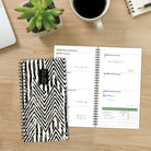 CHIC CONTRAST – The Boho Black Academic 3.5" x 6.5" Weekly Spiral Planner blends bold stripes with a free-spirited, bohemian vibe. Perfectly sized for portability, this striking planner spans July 2025 to June 2026 and combines practicality and accessible style.