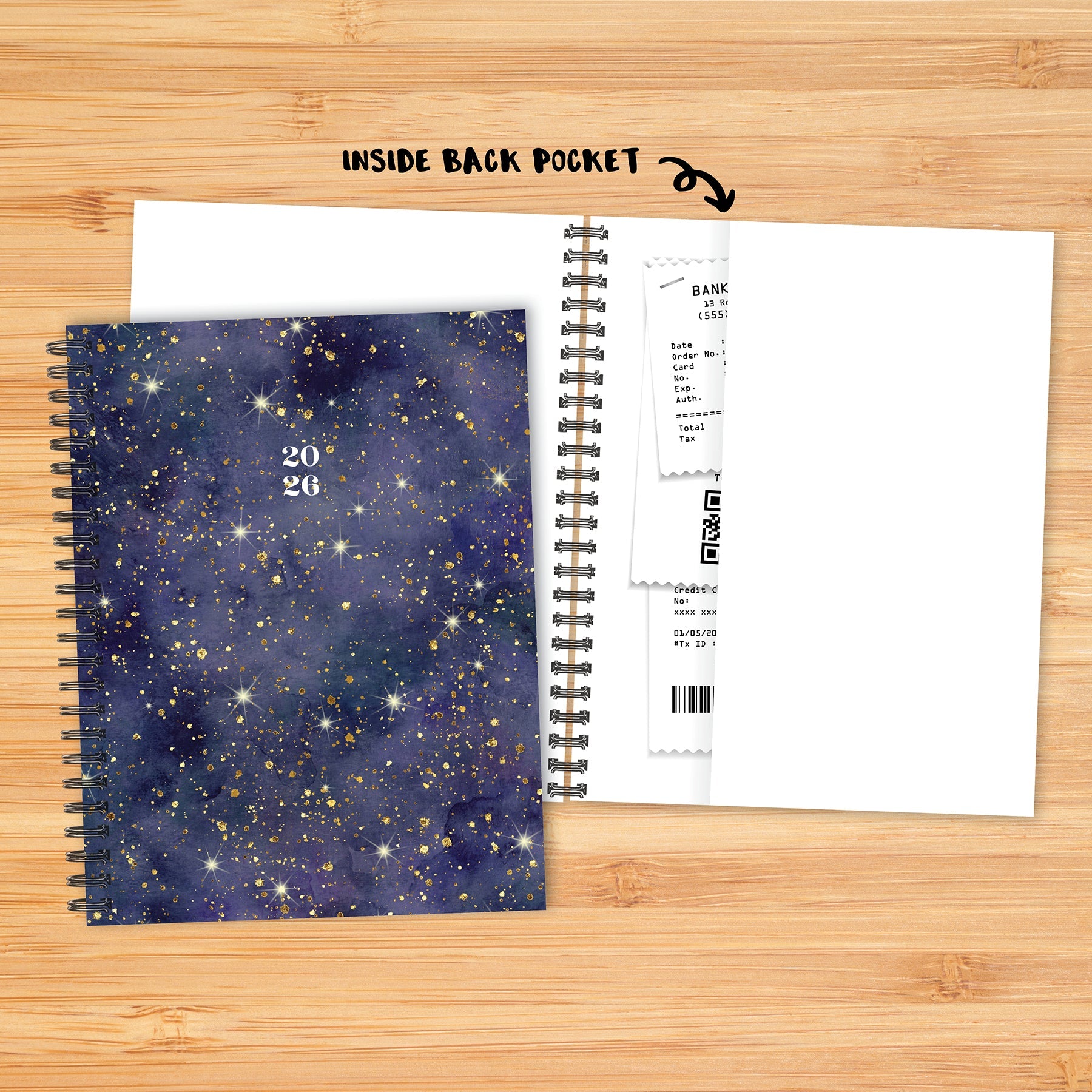 TWINKLE, TWINKLE – Reminiscent of the universe's endless beauty, the Starry Night Weekly Planner captures the magic of the Milky Way with a hazy deep blue cover, generously sprinkled with shimmering gold flecks. Invite the power of the cosmos to enhance your planning and add wonder and inspiration to your weekly schedule from January to December 2026.