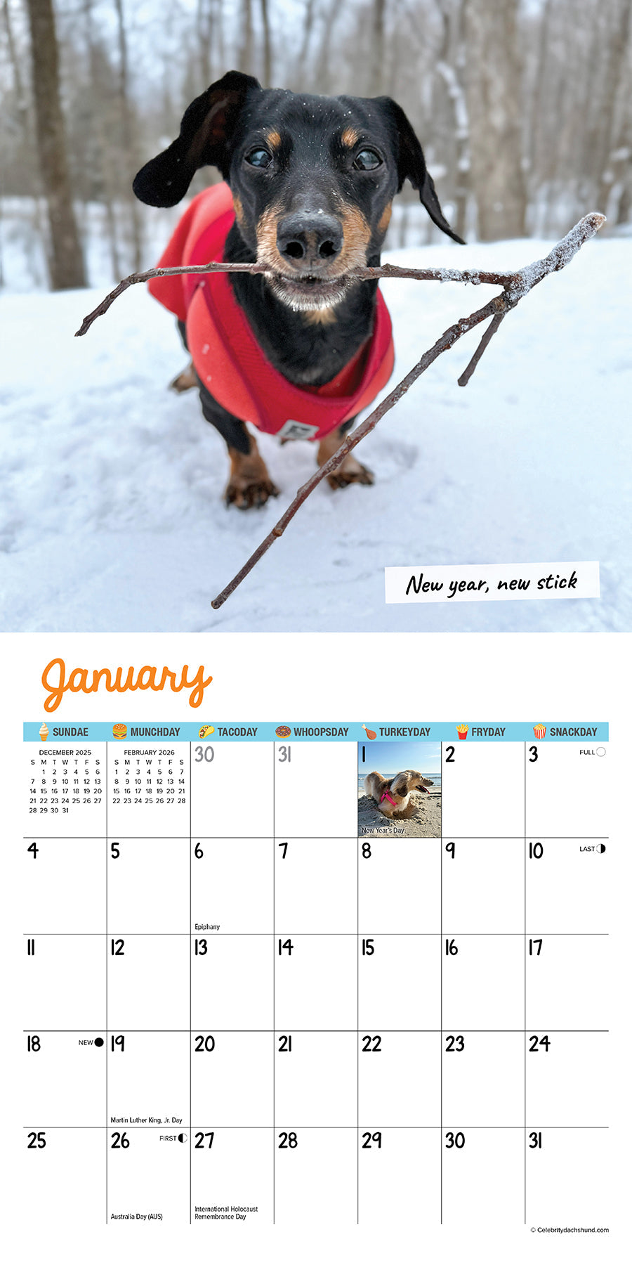Crusoe the Celebrity Dachshund 2026 7" x 7" Mini Wall Calendar