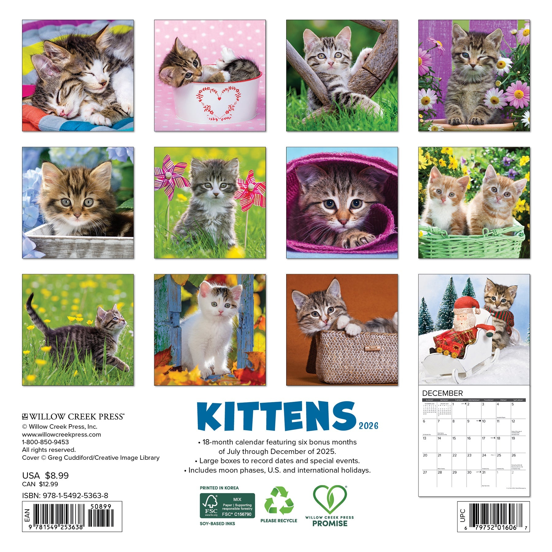 SWEET WHISKERS – Make it a purrfect year with the irresistible cuteness of the 2026 Kittens 7” x 7” Wall Calendar. From fuzzy fluffs to tiny toe beans, these adorably cute kittens will have you mewing with delight. These sweet images will warm your heart and make this a joyful year.