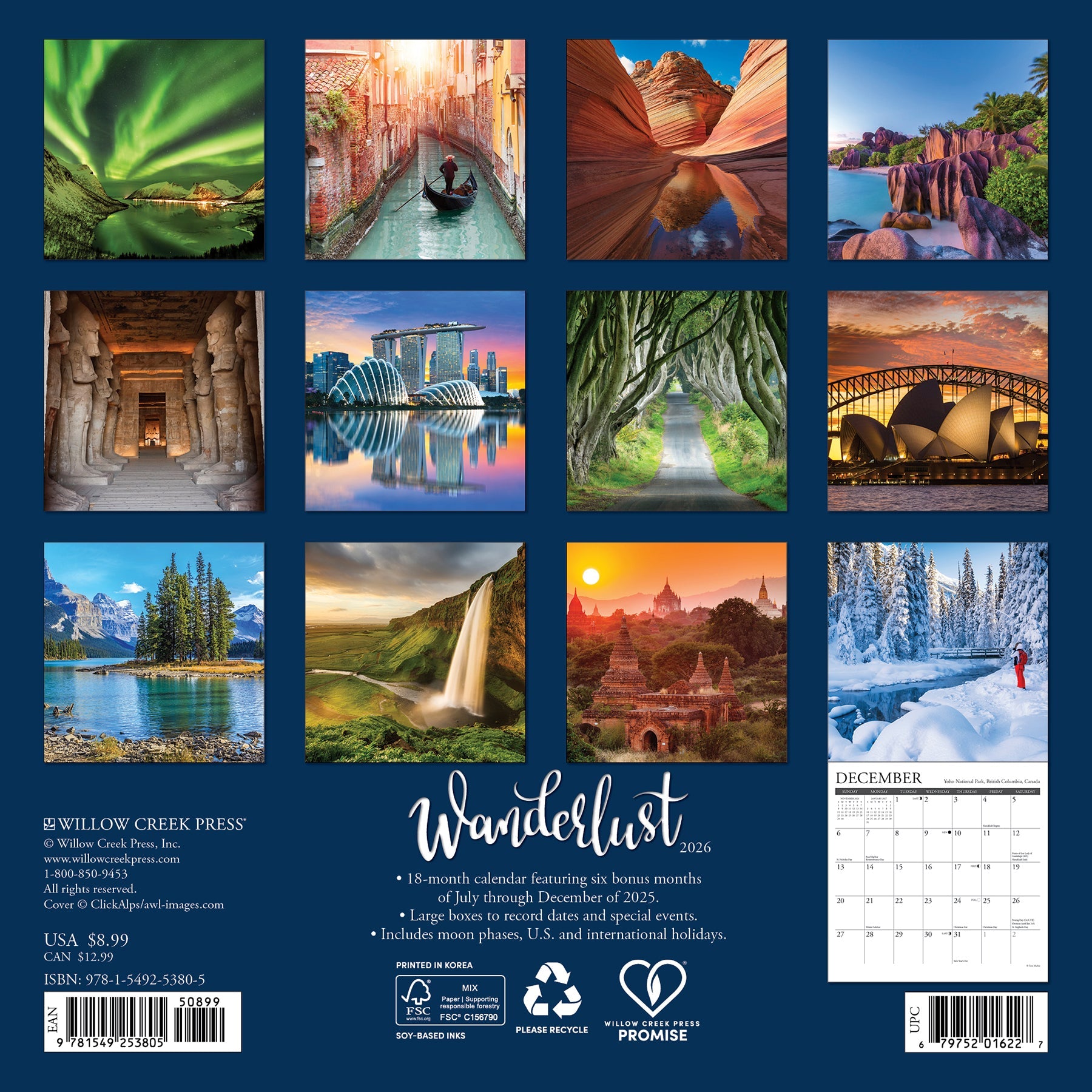 Wanderlust 2026 7" x 7" Mini Wall Calendar