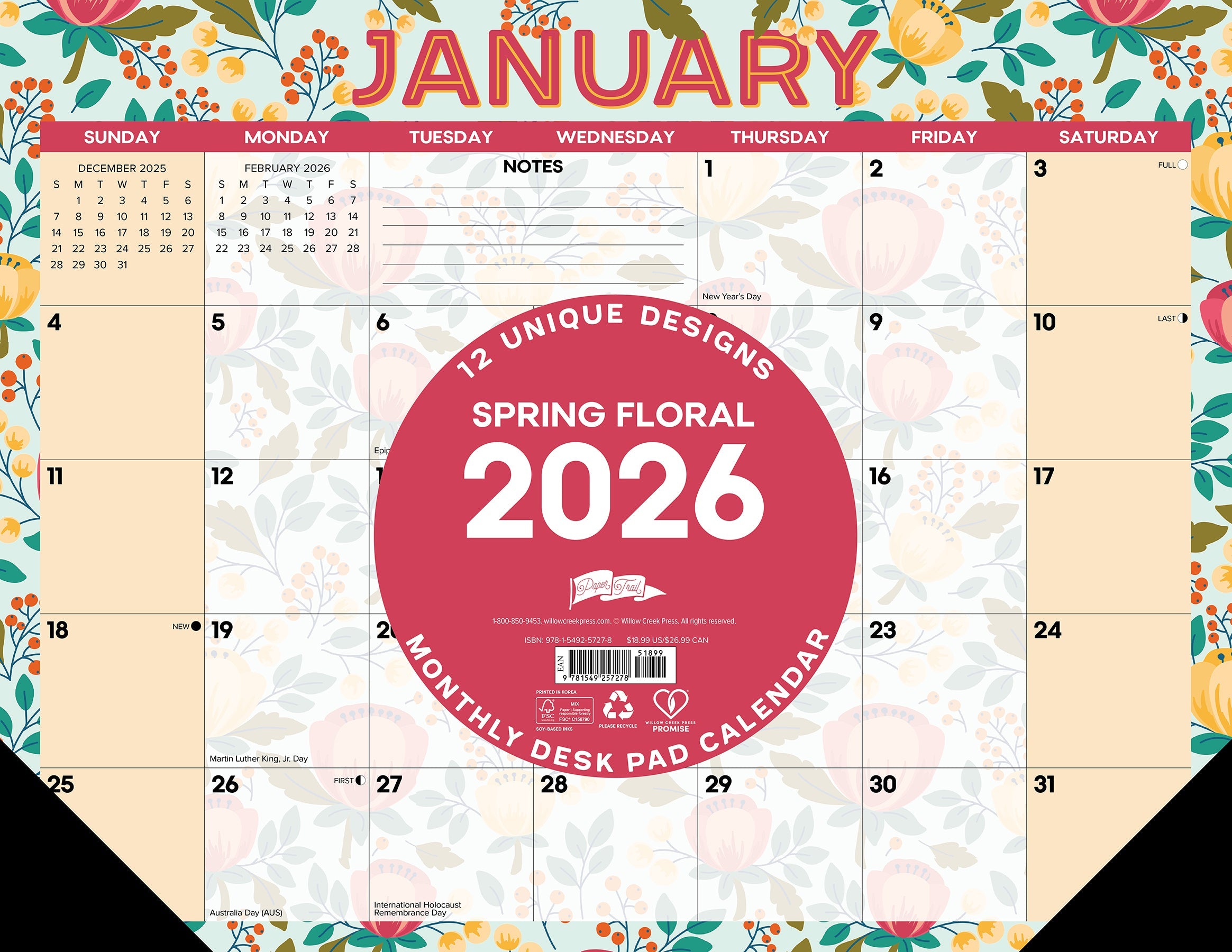 Spring Floral 2026 22" x 17" Large Monthly Desk Pad