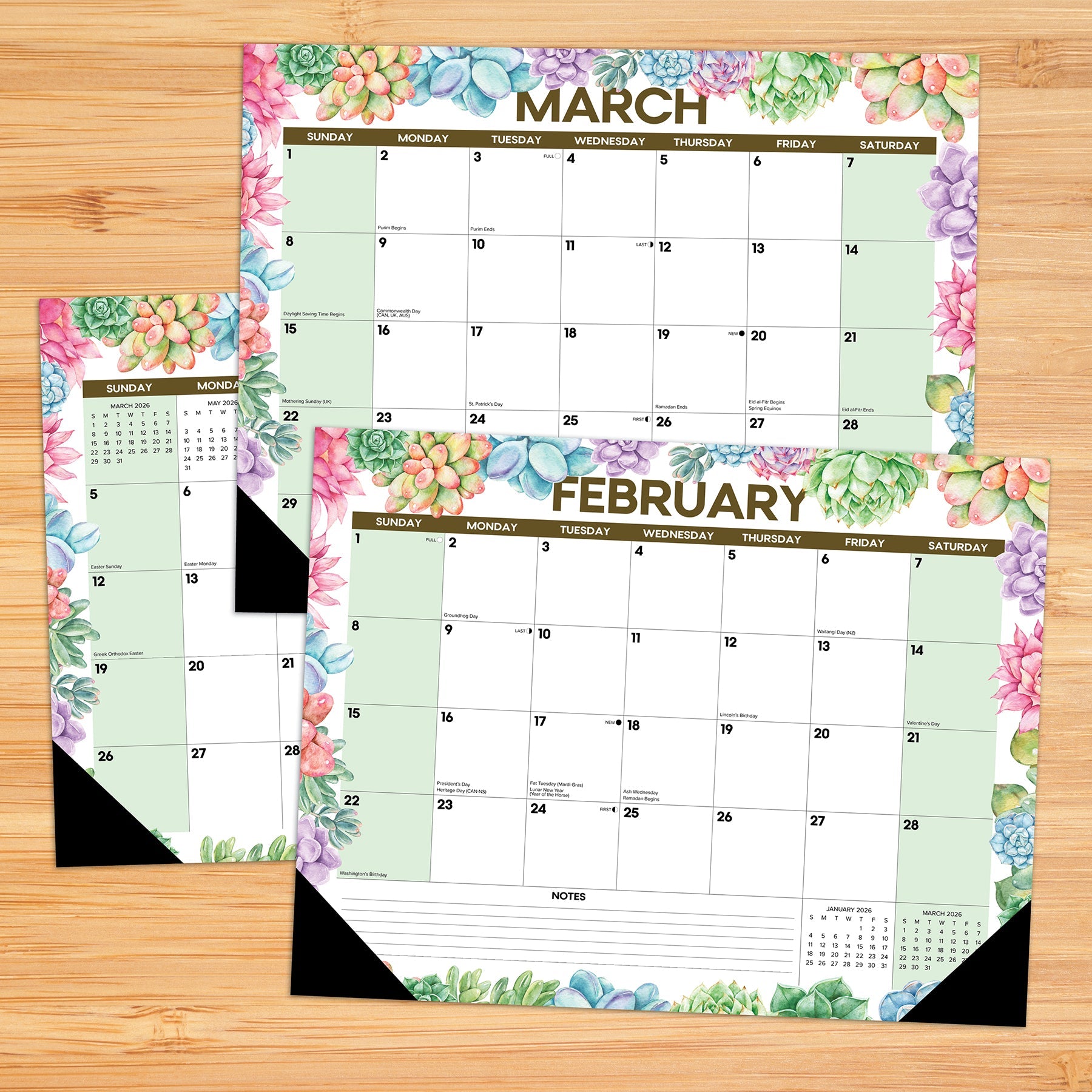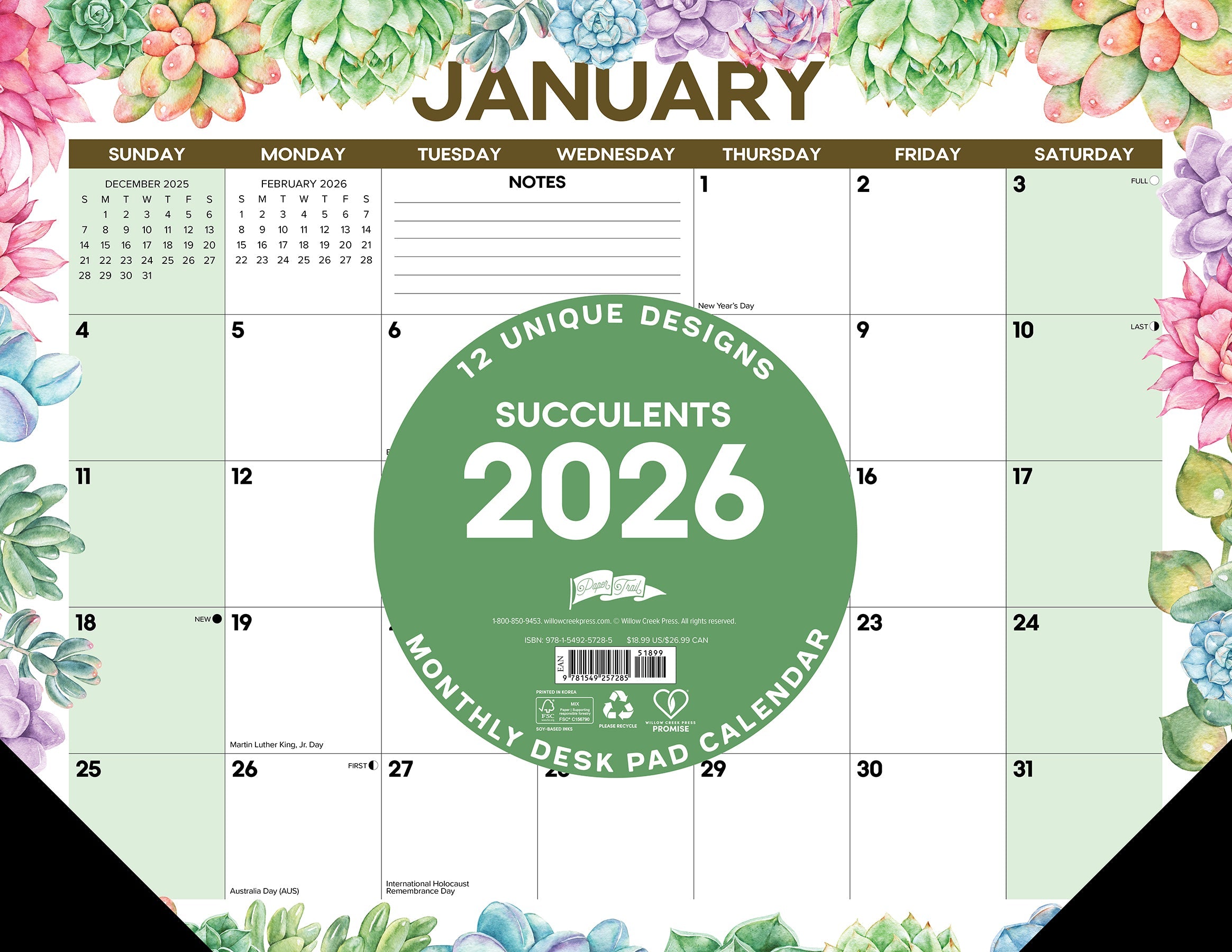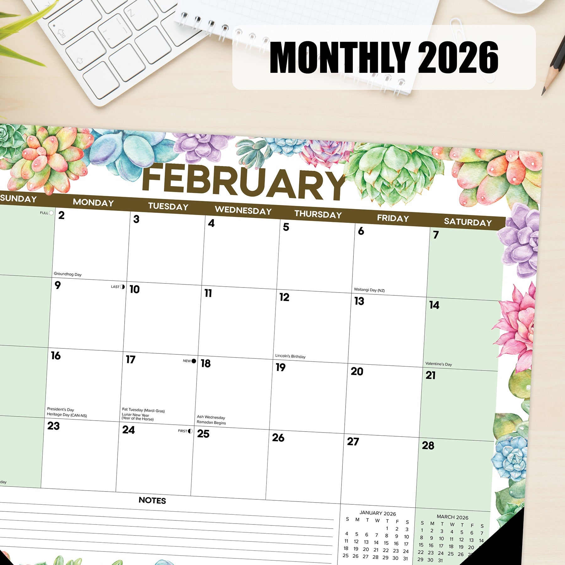 Succulents 2026 22" x 17" Large Monthly Desk Pad