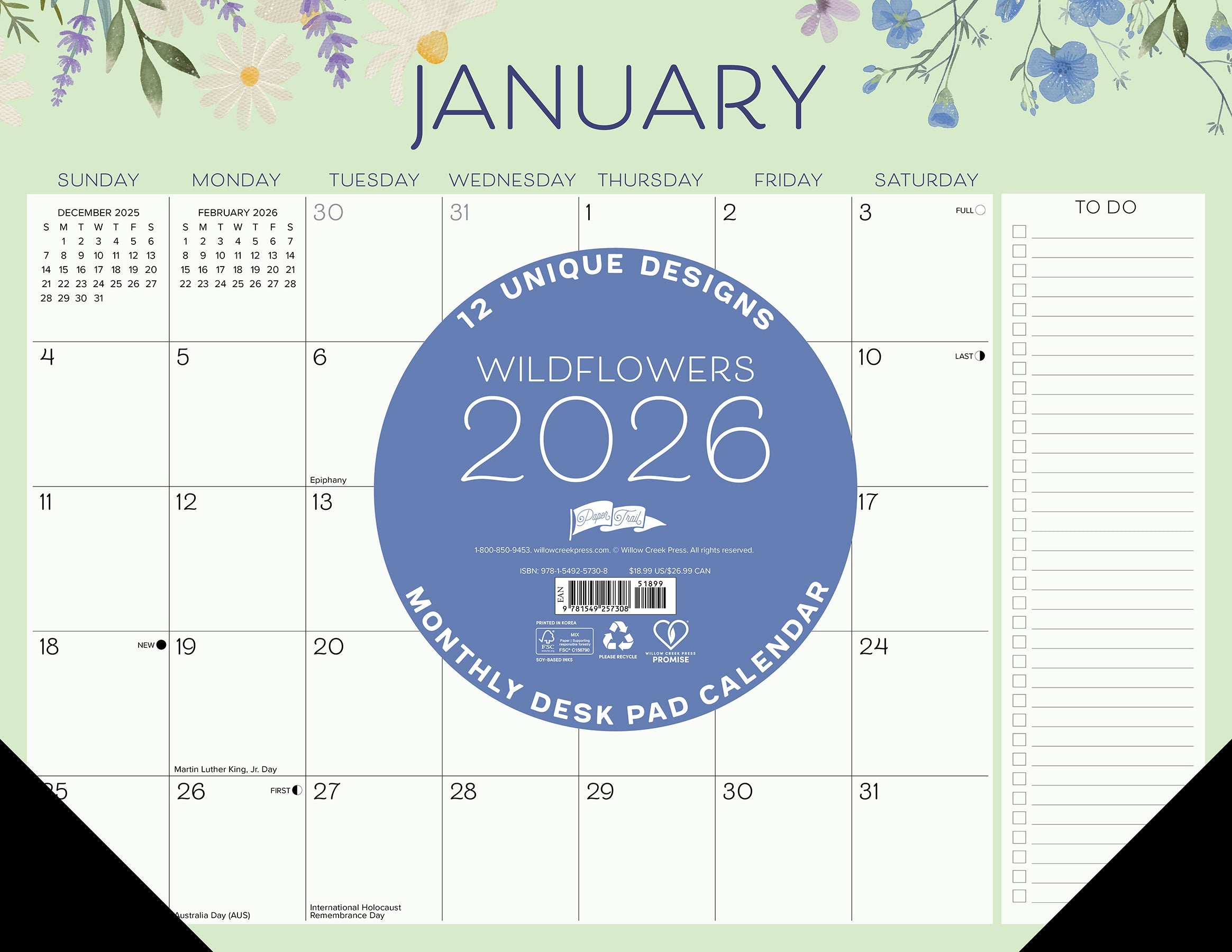 Wildflowers 2026 22" x 17" Large Monthly Desk Pad