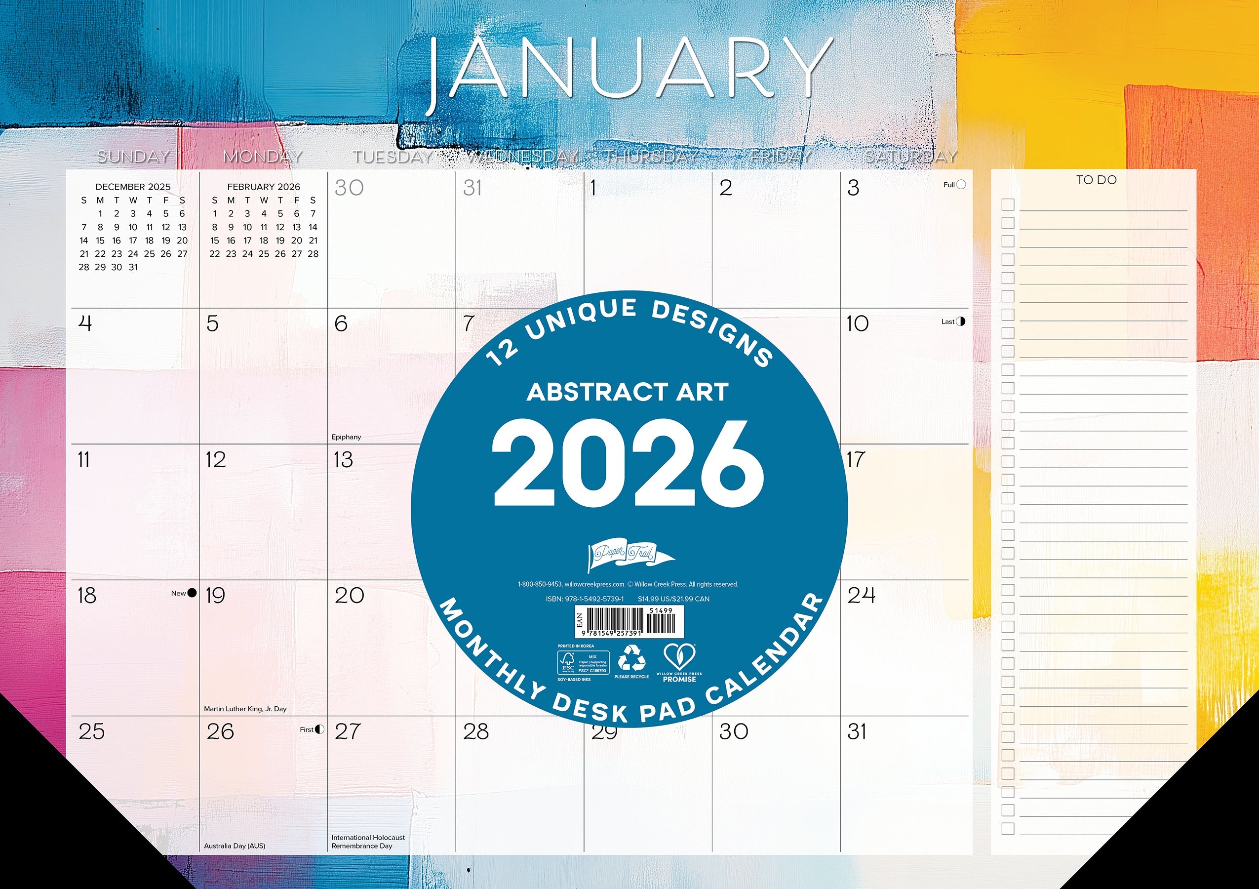 Abstract Art 2026 17" x 12" Small Monthly Desk Pad