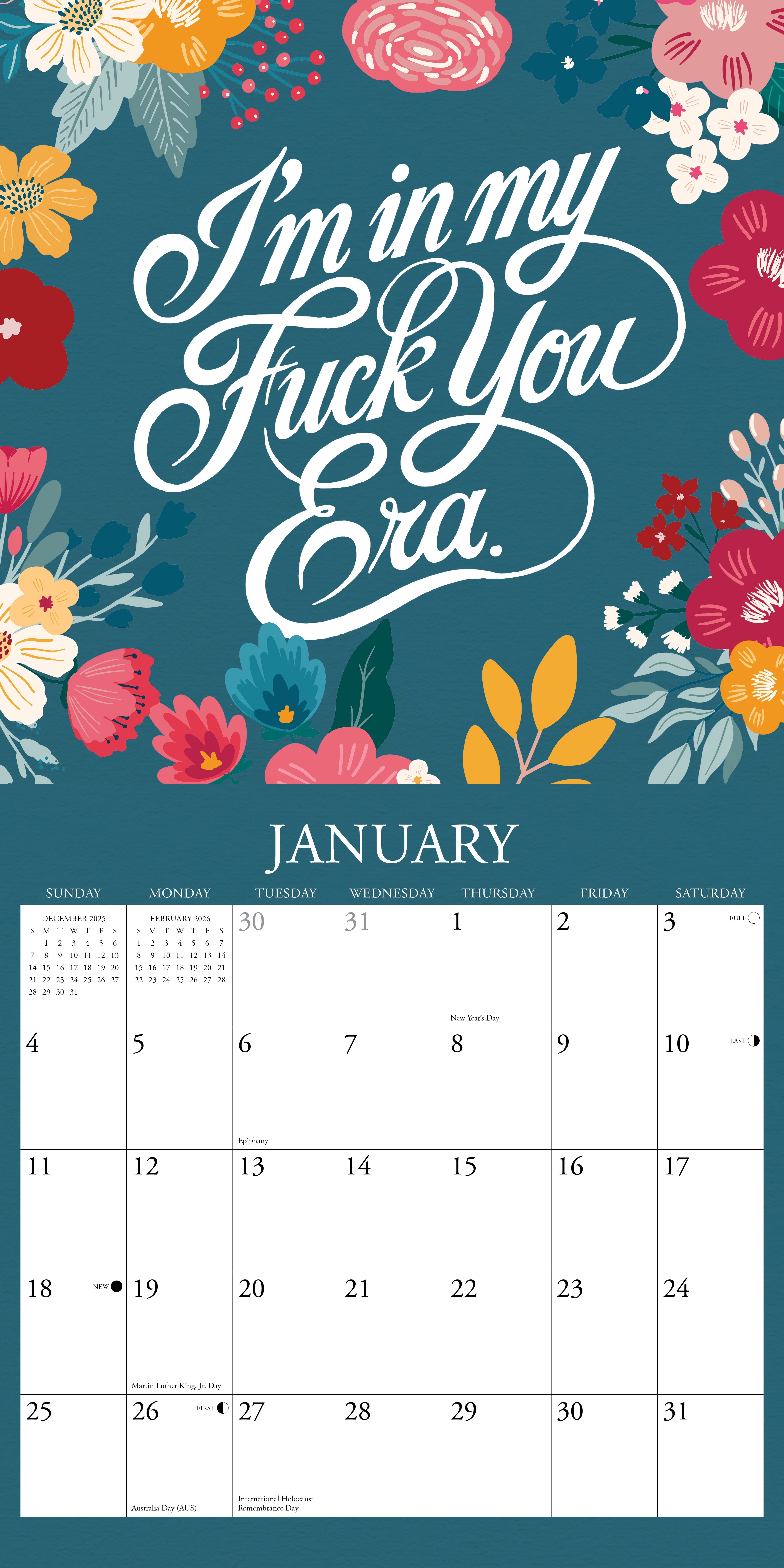 PRETTY PROFANITY – Floral elegance meets no f*cks given in the irreverent 2026 F*ck It Floral 12" x 12" Wall Calendar. Enjoy the juxtaposition of frilly blooms and surly swears, reminding you to let go, live boldly, and embrace your inner badass. Shake off the shackles of conformity and live life on your terms. It's okay to say "f*ck it" to prioritize your own happiness.