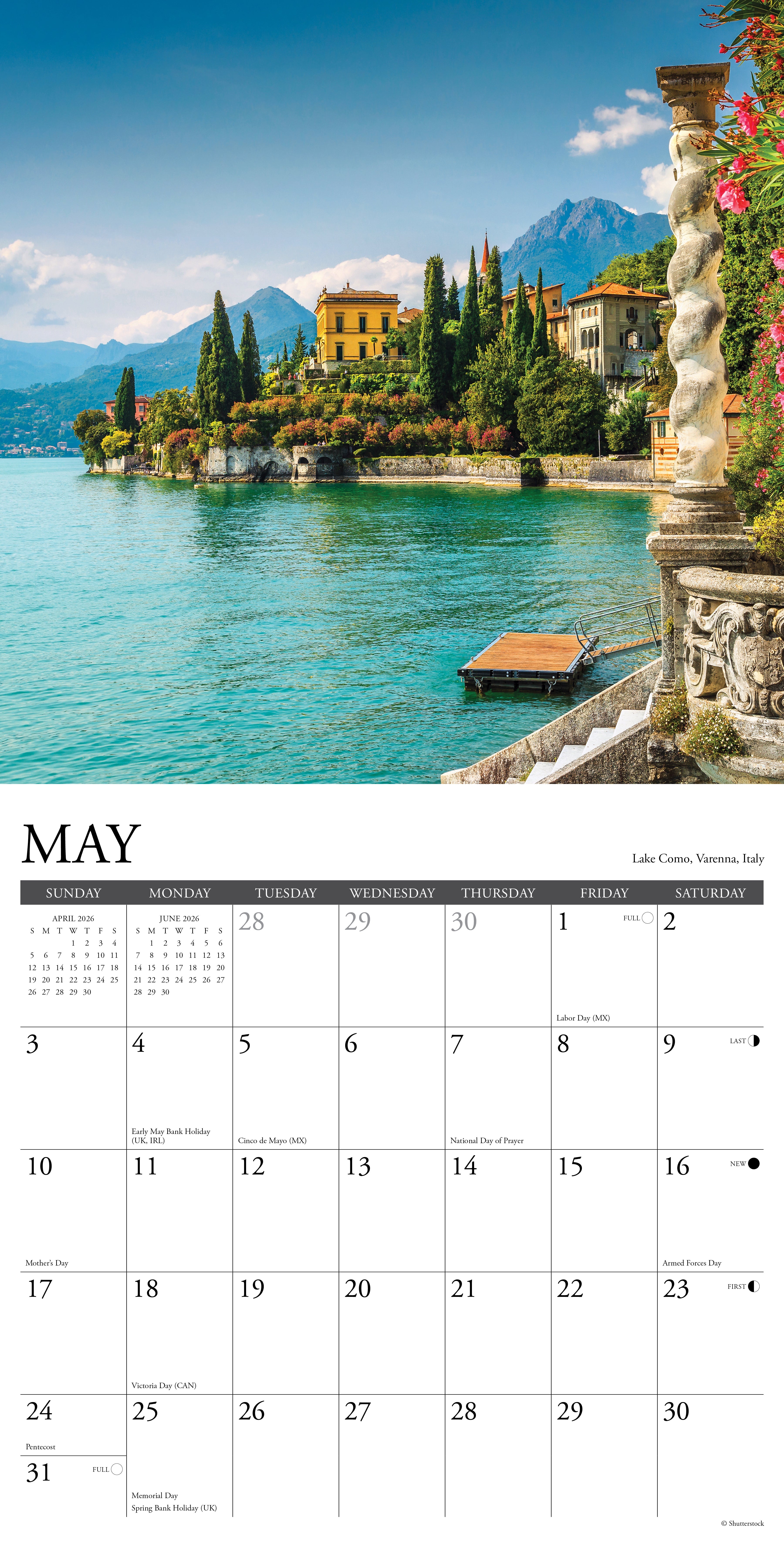 TRANQUIL ESCAPES – The 2026 A Lake View calendar features stunning photographs of lakes from around the world, capturing peaceful waters, colorful reflections, and breathtaking natural beauty. Each month transports you to a serene lakeside haven, perfect for inspiring calm and reflection throughout the year.