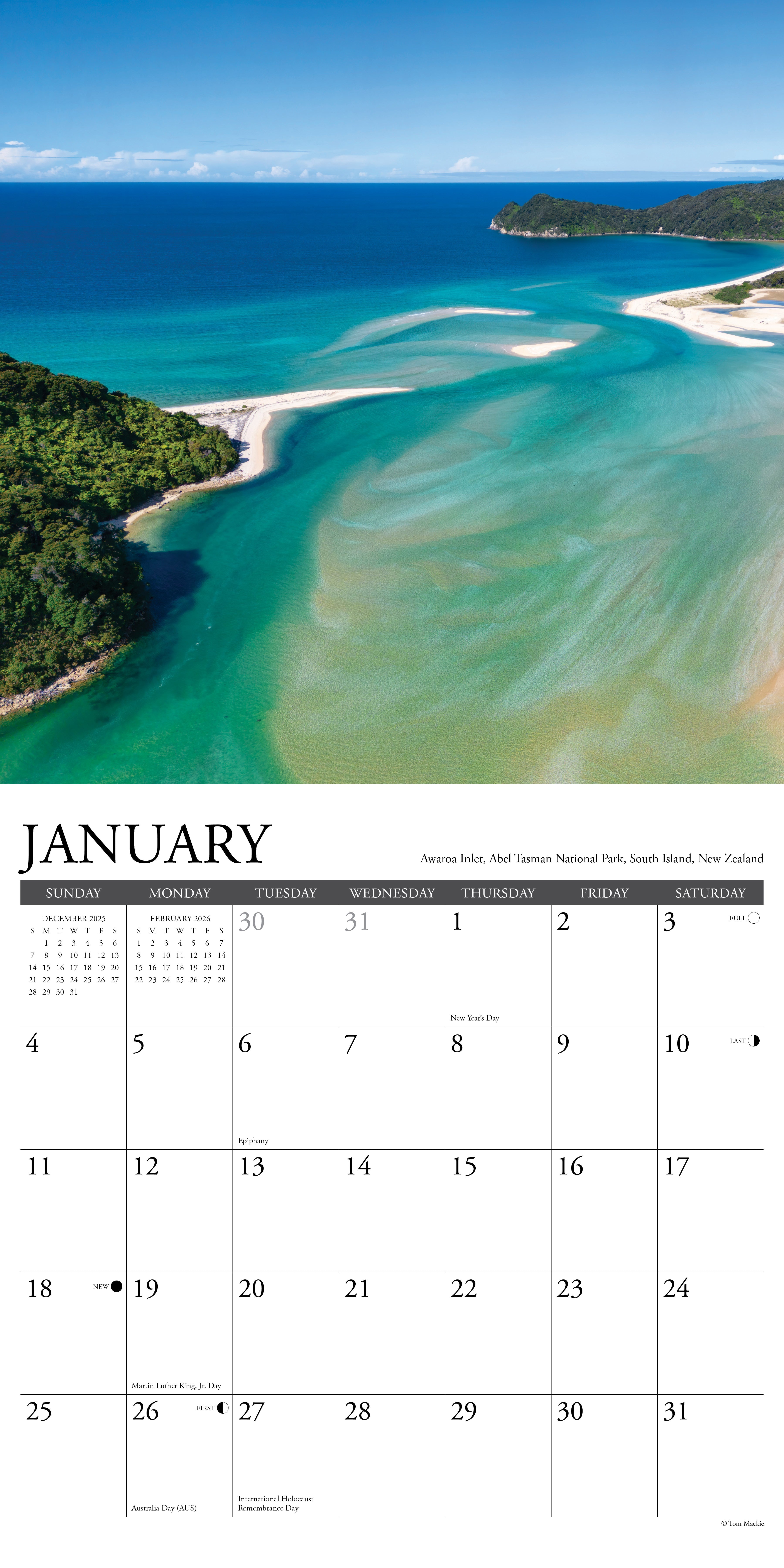 COASTAL ESCAPE – The 2026 An Ocean View Wall Calendar whisks you away to breathtaking beaches, tranquil coves, and sun-soaked shores around the world. Perfect for ocean lovers, this calendar brings the soothing beauty of the sea into your space all year long.