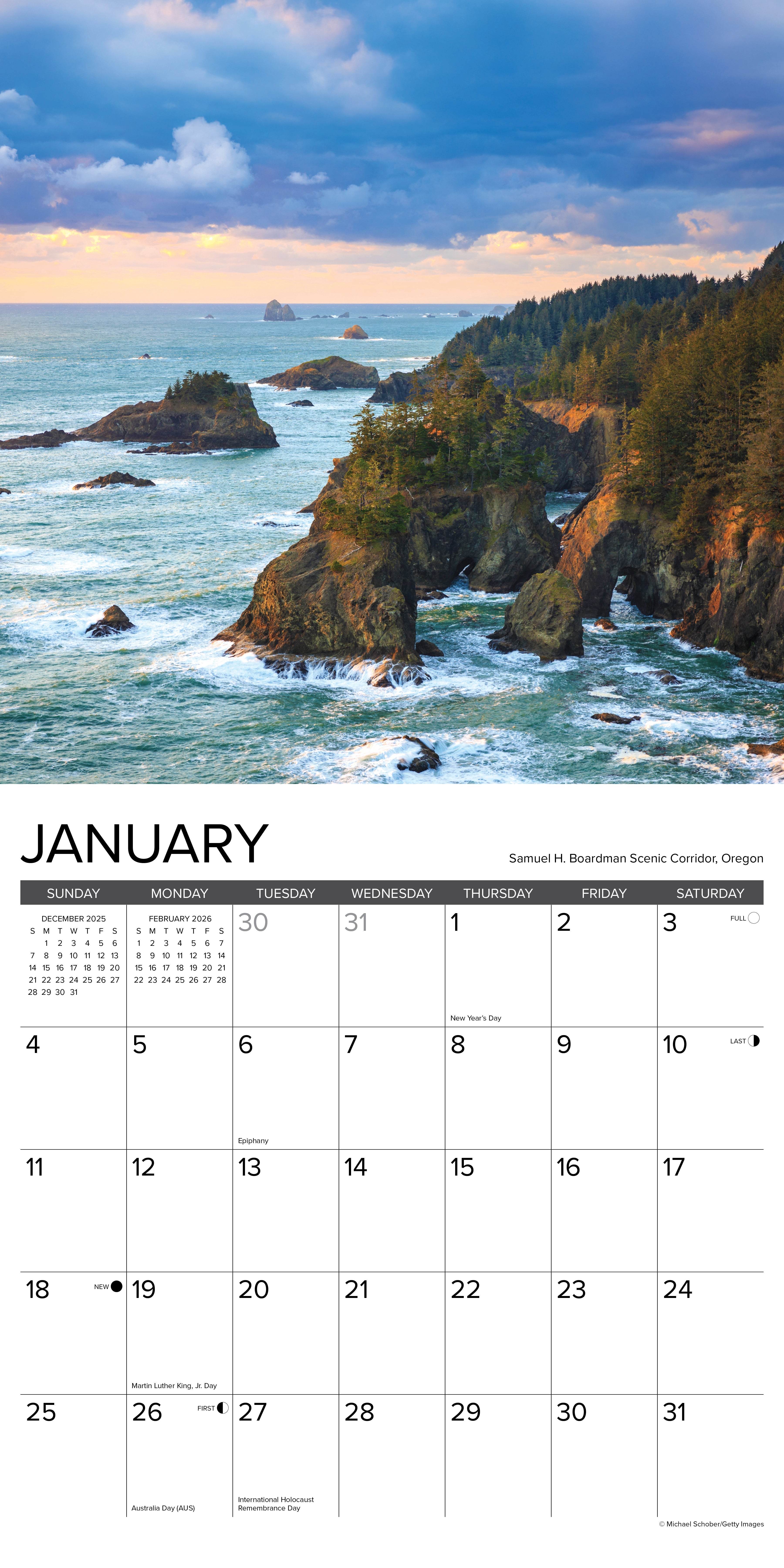 COASTAL SPLENDOR – The 2026 Pacific Coast Wall Calendar captures the breathtaking beauty of rugged shorelines, majestic cliffs, and golden sunsets stretching from California to the Pacific Northwest. Each month offers a new stunning view of nature’s artistry along the western edge of North America.