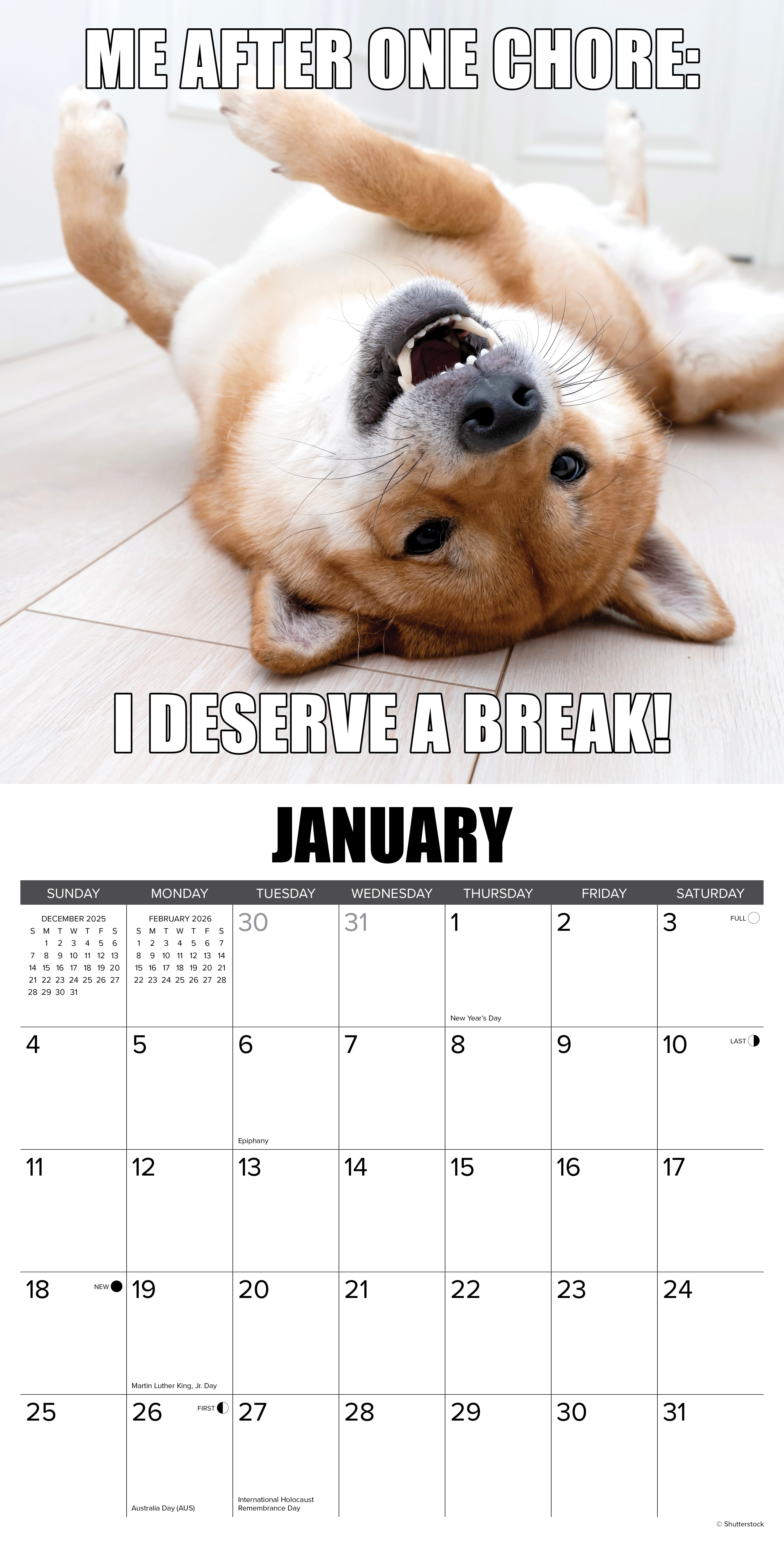 PAWSITIVELY HILARIOUS – This 2026 wall calendar delivers a year of canine comedy, featuring charming pups with witty captions that perfectly capture their mischievous personalities. From fashion faux paws to treat-loving antics, it’s the paw-fect way to smile through every month.