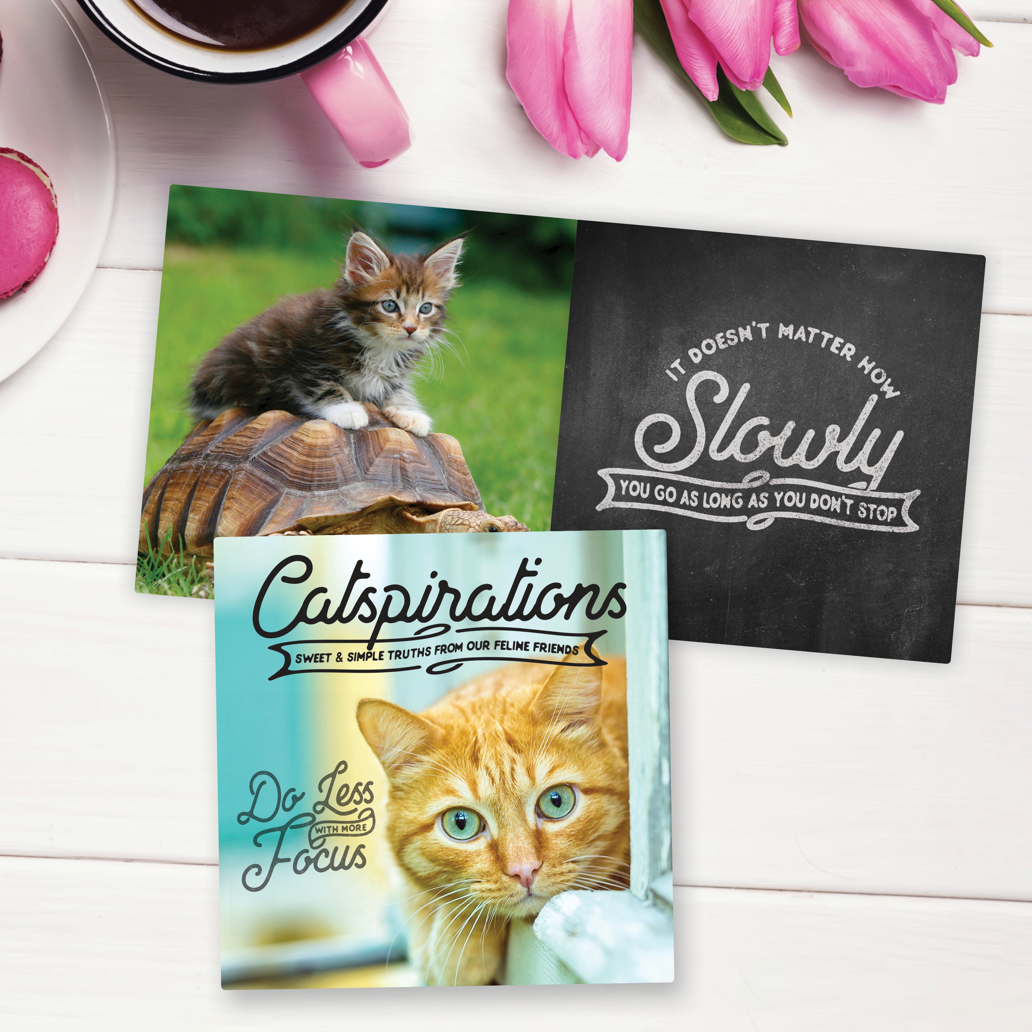 In Catspirations, our feline friends offer sweet, simple truths that are meant to encourage, inspire and impart a positive mindset. A cat is nothing without attitude and we, their people, can learn a lot from how they see the world around them.