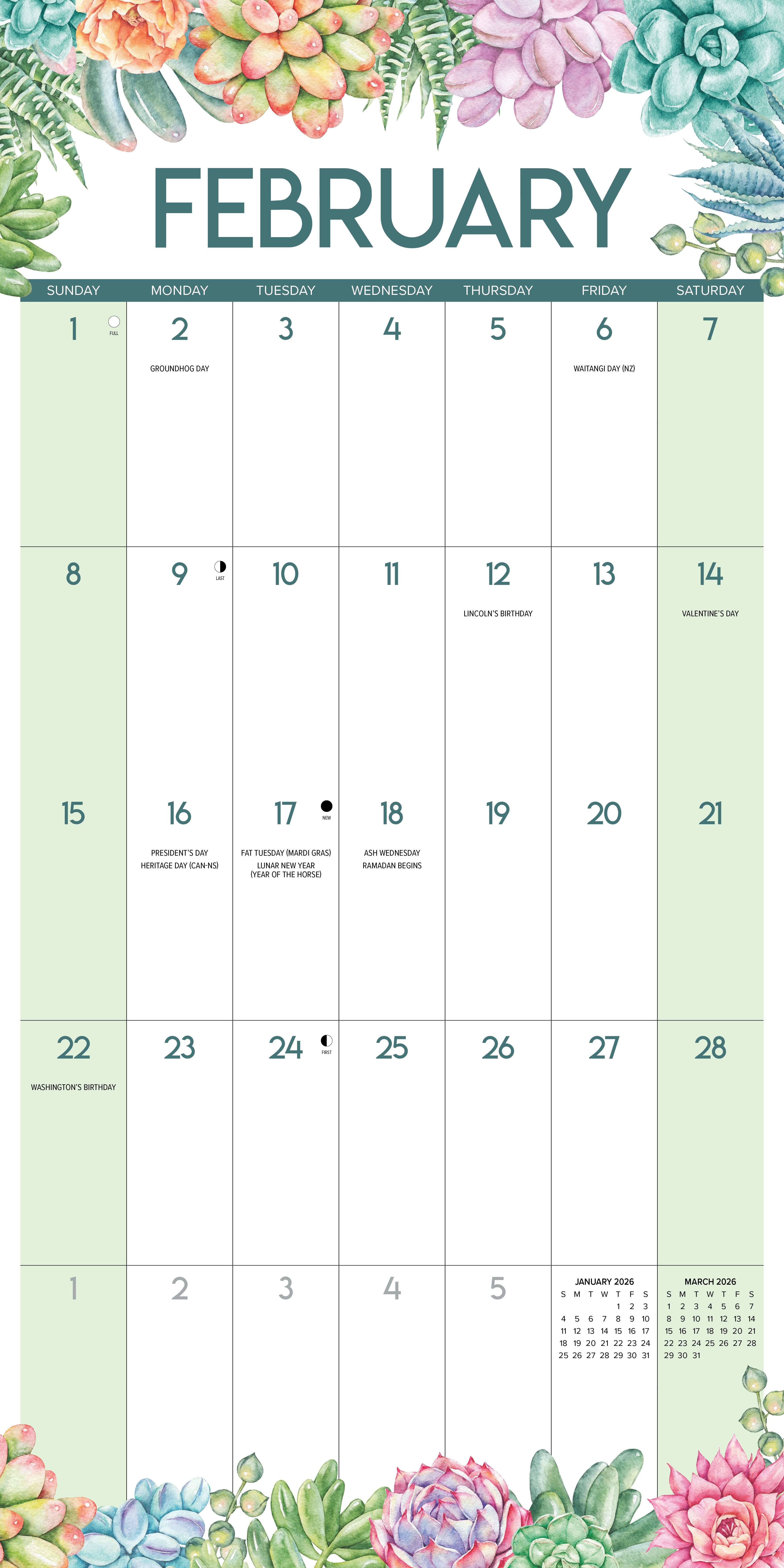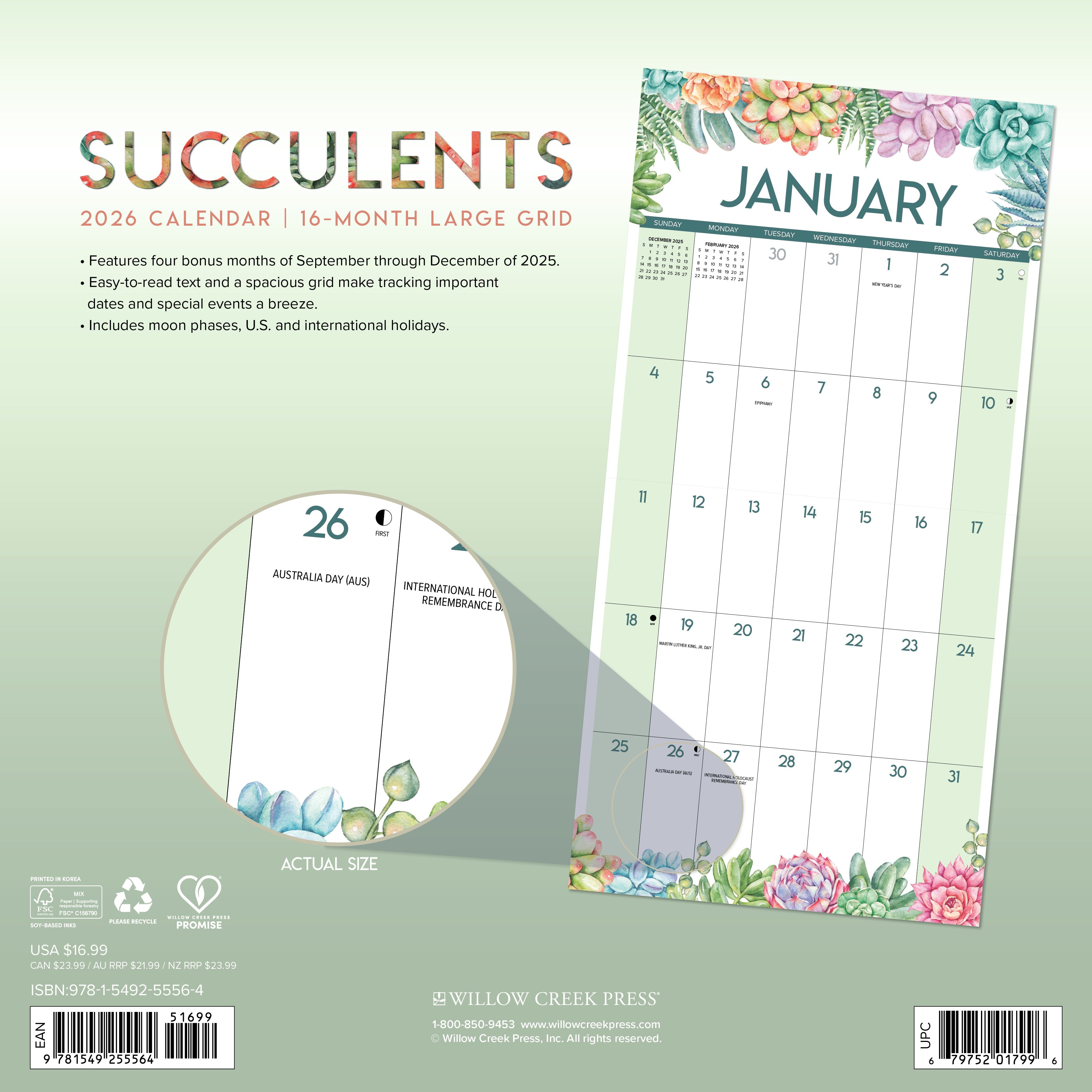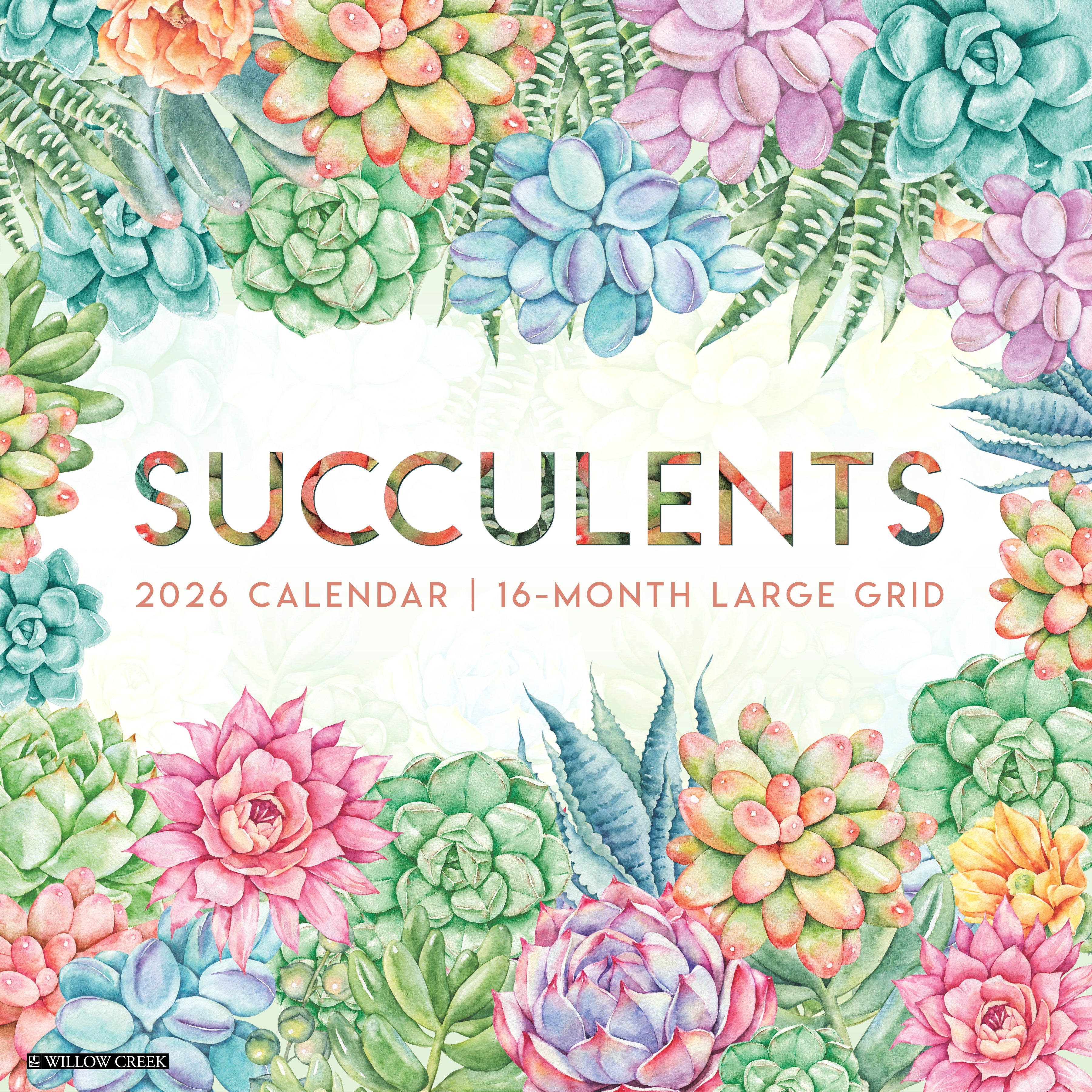 Succulents—Large Grid 2026 12" x 12" Wall Calendar