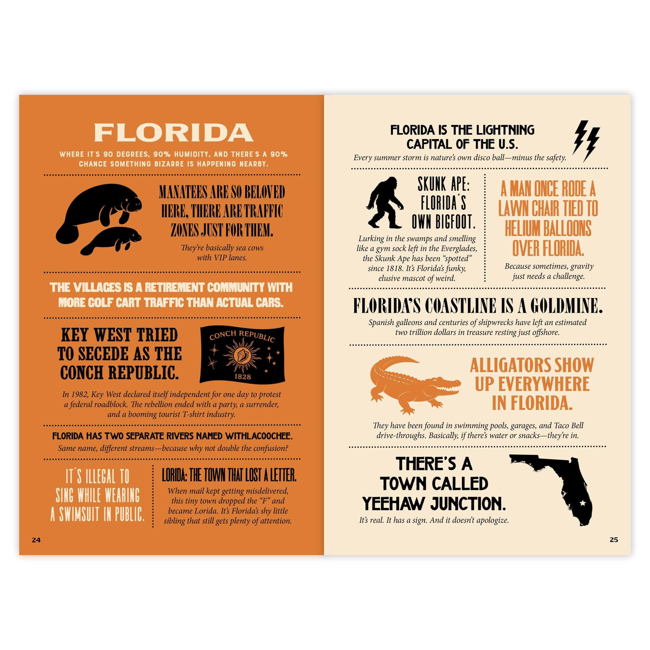This 6x9 softcover book is packed with fun, surprising, and downright bizarre facts from coast to coast.