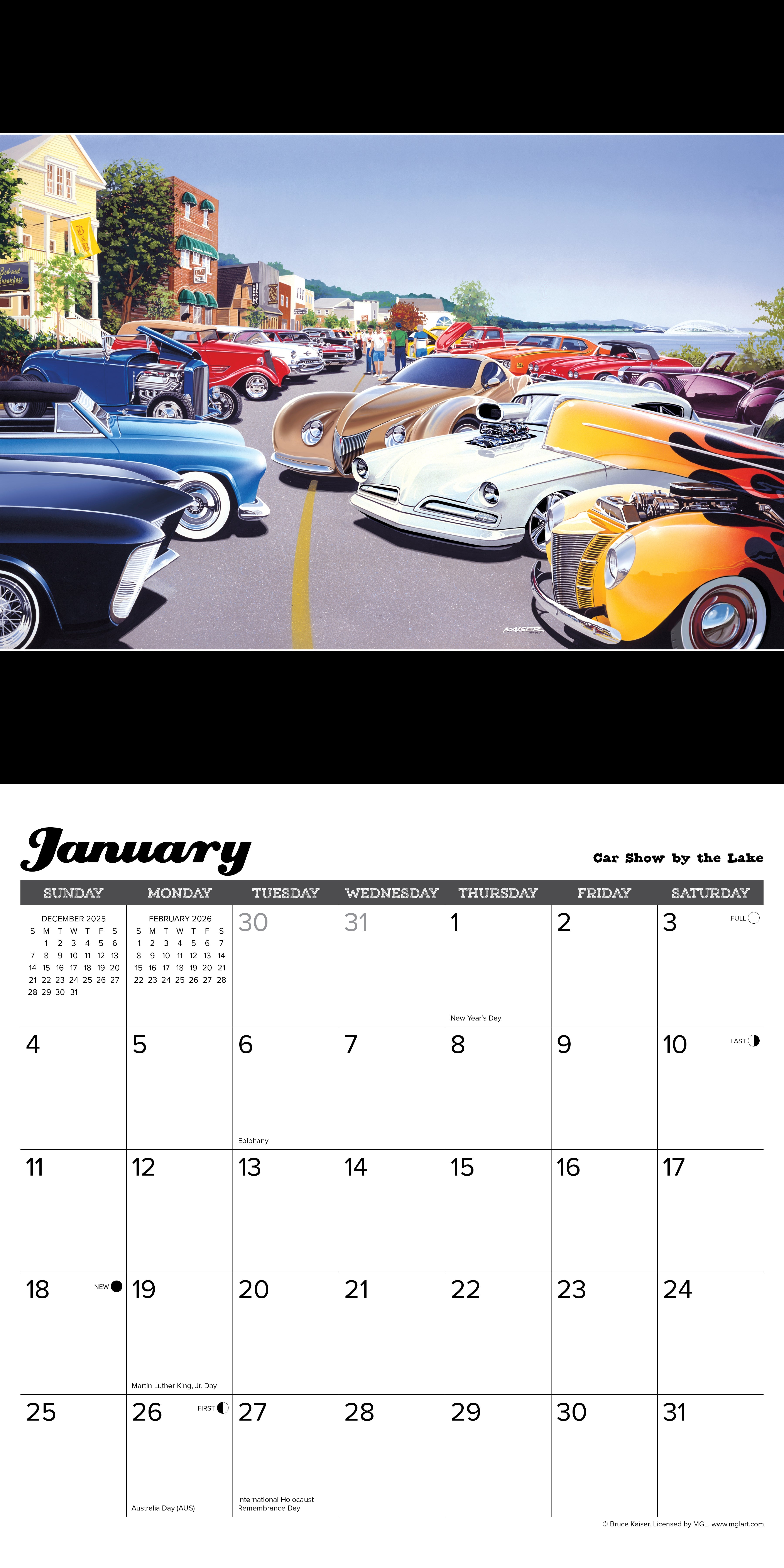 Explore the world of American Muscle Cars with our "Transportation Calendars"! Featuring stunning images of classic cars, motorcycles, trains, and more, you'll be transported back in time. Don't miss out on our limited edition calendars with foil accents, perfect for any car enthusiast.
