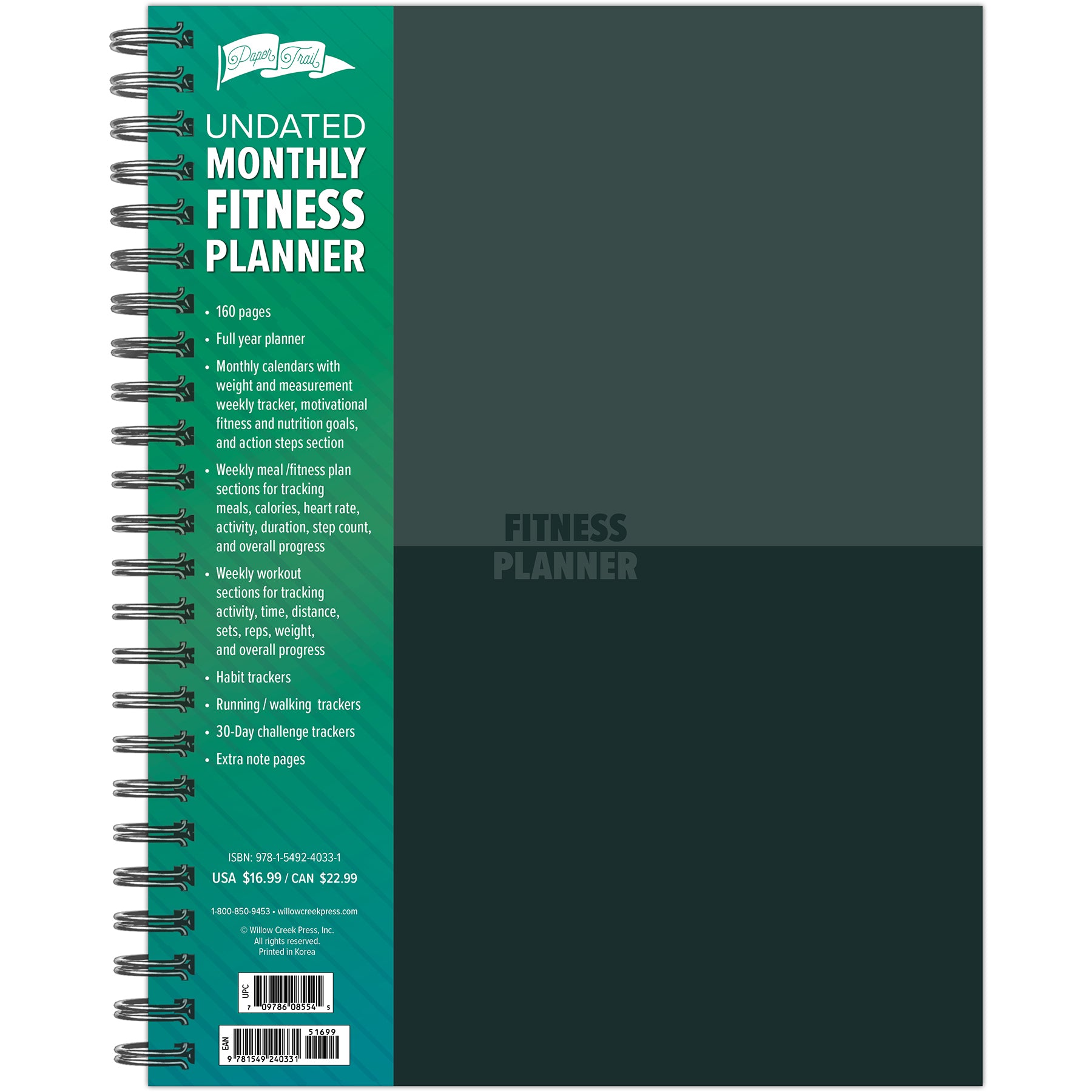 Hit your fitness goals with this large-format 8.5”x 11” softcover undated fitness planner!