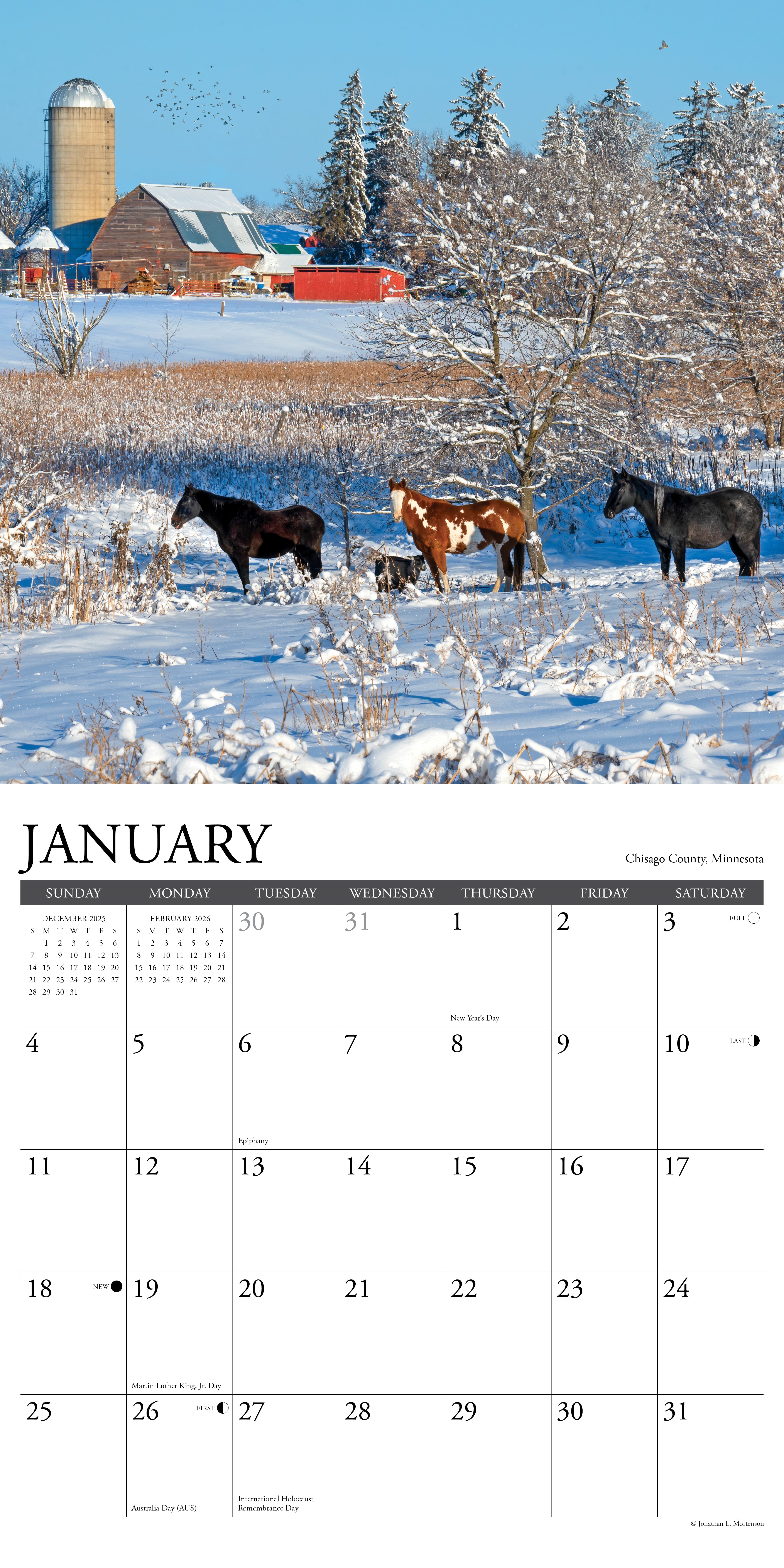 HOME IS WHERE THE HEARTLAND IS – From Minnesota to Missouri and Ohio to the Dakotas, the seasonal beauty of the Midwest is on full display in the 2026 Seasons of the Midwest 12" x 12" Wall Calendar. Whether it's the colorful blooms and lush green fields of spring and summer or the fiery autumn foliage giving way to the serene snowscapes of winter, this calendar celebrates the ever-changing scenery of the Heartland. These beautiful photographs make it easy to see why the Midwest is a special place to call home.